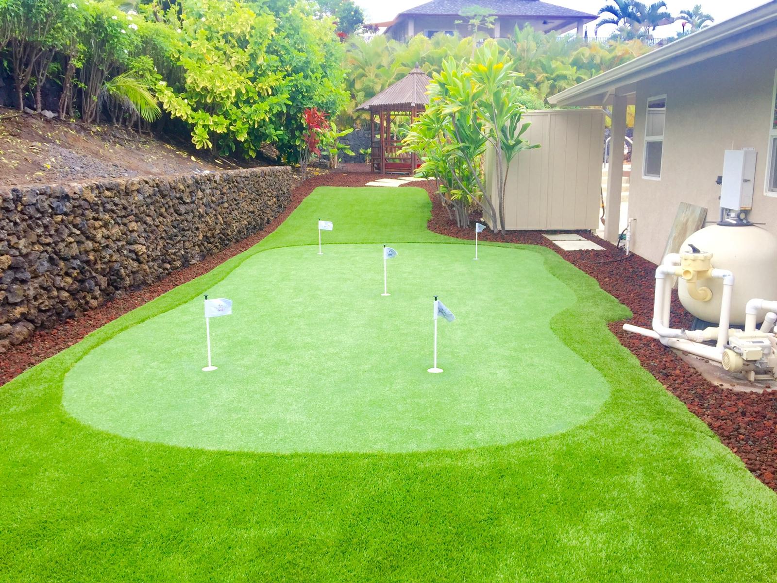 Our comprehensive approach encompasses every aspect of the installation process, including slope, drainage, and contouring, to create an authentic golf experience tailored to your specific location. With Aloha Putting Greens, your outdoor space will remain lush and inviting throughout the year, eliminating the inconvenience of maintenance.